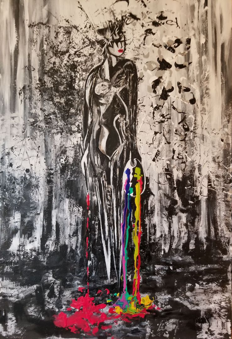 The artwork that I create is unique because I am not limited to a specific theme or by the materials that I use. I create what moves me in any form using multiple types of paint, mediums, fabric and other various elements that will transform them to a finished piece. I use mixed media to bring an abstract view or oils and acrylic paint for a more realistic representation. I allow the contrast of the light and darkness and the battle that they ensue to influence the mood.